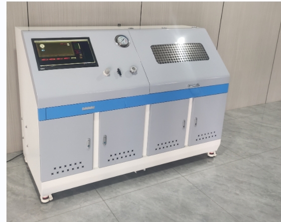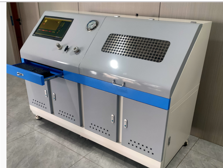 氣瓶內水壓試驗機(鋼瓶內測法水壓試驗機)壓力范圍0~45mpa,介質為靜止的清水,系統內置高壓泵,實現對壓力高的高壓打壓,高壓保壓,高壓泄壓的測試效果,具體的測試步驟為:注水→打壓→保壓→泄壓→輸出數據的過程。”是用于針對鋼瓶,氣瓶,非標纏繞瓶,軍工纏繞瓶的內水壓測試的范式,壓力范圍:0.1~45Mpa,介質為靜置的液體,采用思明特增壓泵完成對壓力的增壓,計算機壓力控制系統控制壓力和控制增壓速率。